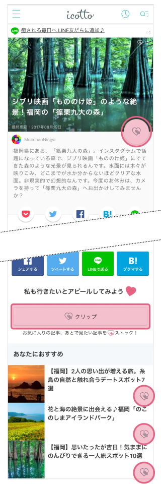 クリップボタンをクリックすると、あとで読みたい記事や、お気に入りの記事をクリップしておくことができます。どんどん記事をクリップしよう!