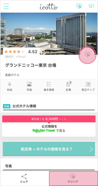 クリップボタンをクリックすると、あとで読みたいスポットや、お気に入りのスポットをクリップしておくことができます。どんどんスポットをクリップしよう!
