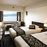 湖に面したホテル、船着き場のすぐそばです。夜に着いて朝出発したので、特に印象に残ったことはありませんが、かけ流しの温泉は系列の四つ星ホテルの女将さんが入りに来る程だそうです。ホテルの近くに足湯があります。