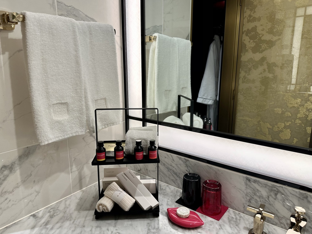 そしてスーペリアルームにはバスタブと洗い場があり、白を基調とした大理石タイルの明るい水回りは高級感があります。