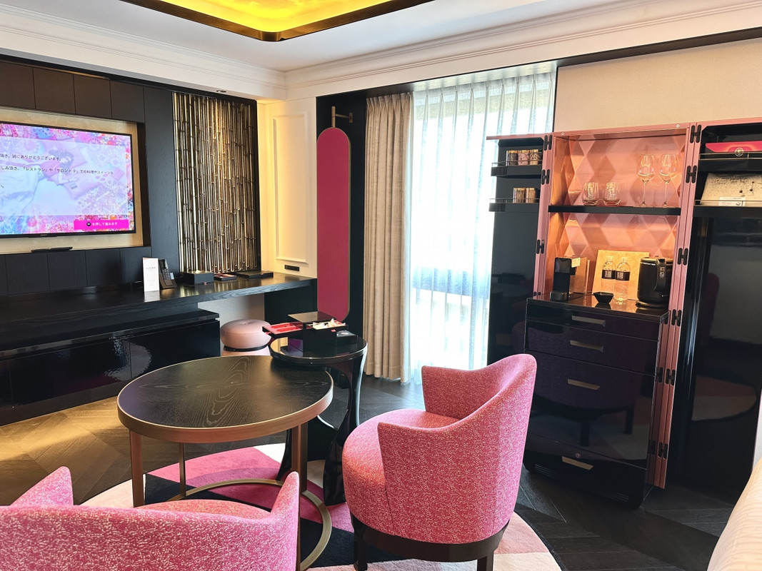 ホテル内部はビジネスホテルをリノベーションしているので空間が小さいですが、客室の設えや色合いが品良く寛げました。ピンクやゴールドを使っても全く嫌味でない仕上がりに驚きます。