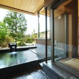 露天風呂付き客室なら、朝は客室のお風呂へ。やわらかな感触の浅間温泉に浸かっていると、体の中からじっくり目覚めていき、スッキリ気分爽快に!お腹もすいてくるので、朝ごはんに向かいましょう。