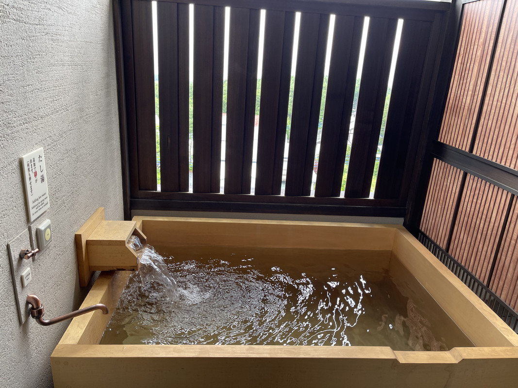 お部屋の露天も湯温が高いから、お湯を張って少し冷ましてからゆっくり入りました