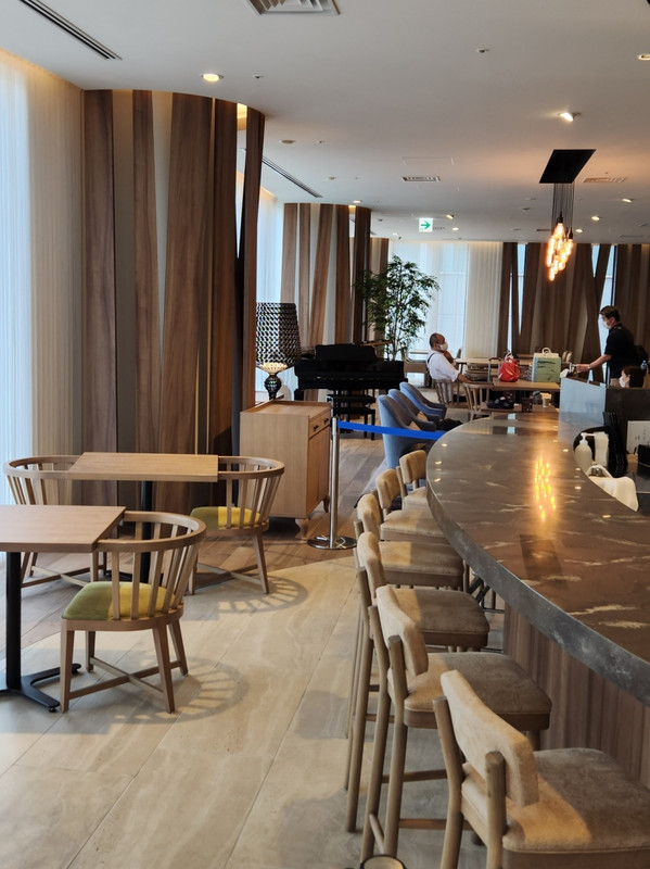 フロント脇のラウンジでは、お茶や夜食のサービスもあると聞いて行ってみましたが、座席もサービスの内容も「これでハイクラス?」とガッカリ。
