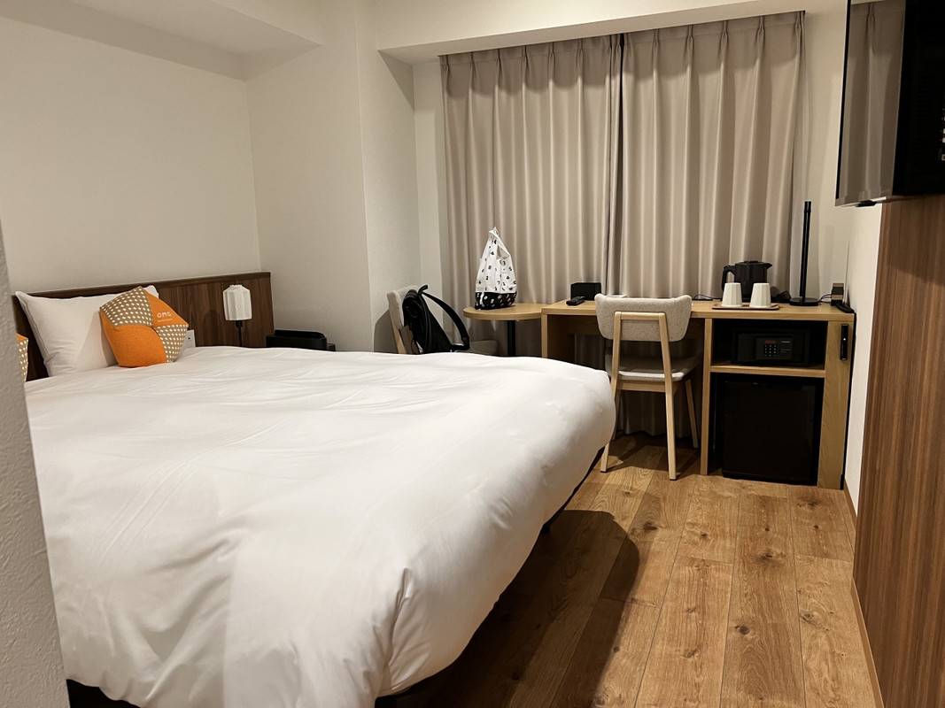 部屋はビジネスホテルタイプで狭い部屋、しかもシャワーのみです。