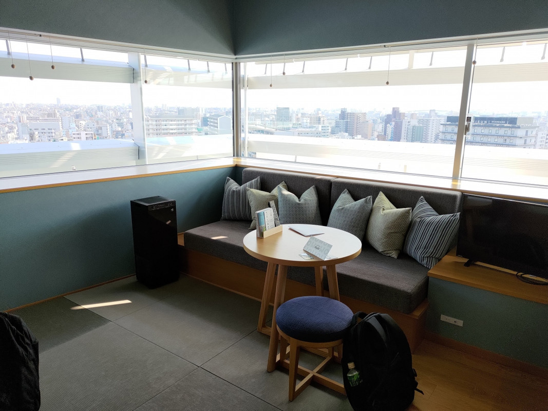 新今宮駅からすぐという抜群のアクセス、見てすぐにわかる外観、どこが入り口かと、少し迷わせてくれる遊び心。非常にわくわくさせてくれるホテルです。自動チェックインを、サポートしてもらいながら終えると、アメニティーやおしゃれな浴衣を選び、自分で取って部屋へ上っていきます。入室すると、靴を脱ぎ、板の間から畳の上へ。和の良さを堪能させてくれます。ベッドは快適で、椅子やテーブルも備えてあり、洋の良さもあります。このミックス間が大阪っぽいごちゃまぜ感と相まって、リゾートを感じさせてくれます。晩は庭でたこ焼きや地ビールが振舞われ、ホテルの建物に投影される花火なんかを眺めながら、味わうことができます。星野リゾートならではのアイデア、といった感じで、ともて楽しめます。