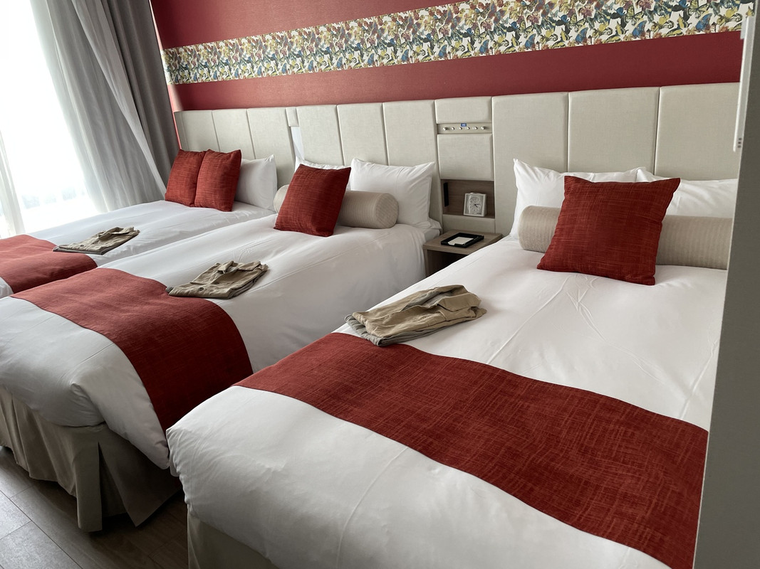 2021年7月にオープンした新しいホテルです。国際通りにも歩いて行け、ゆいレール安里駅までは徒歩3分程と立地も良いです。ホテルの最上階にはインフィニティプールがあり、那覇の街並みを一望できます。子供用の浅いプールもあるので小さな子も泳ぐことができます。ホテルの部屋はコンパクトですが機能的で、何より新しいのが嬉しいです。私たちはスタンダードツインの部屋にエキストラベッドを入れて3名で宿泊したので狭く、スーツケースを開けるのに苦労しました。バス、トイレは別でお風呂には洗い場があり使い勝手がよかったです。朝食ビュッフェのイチオシはたくさんの具材を自由に組み合わせてハンバーガーを作れるハンバーガーステーション。バンズも具材もたくさんあって楽しいです。沖縄料理も豊富でおいしくいただきました。