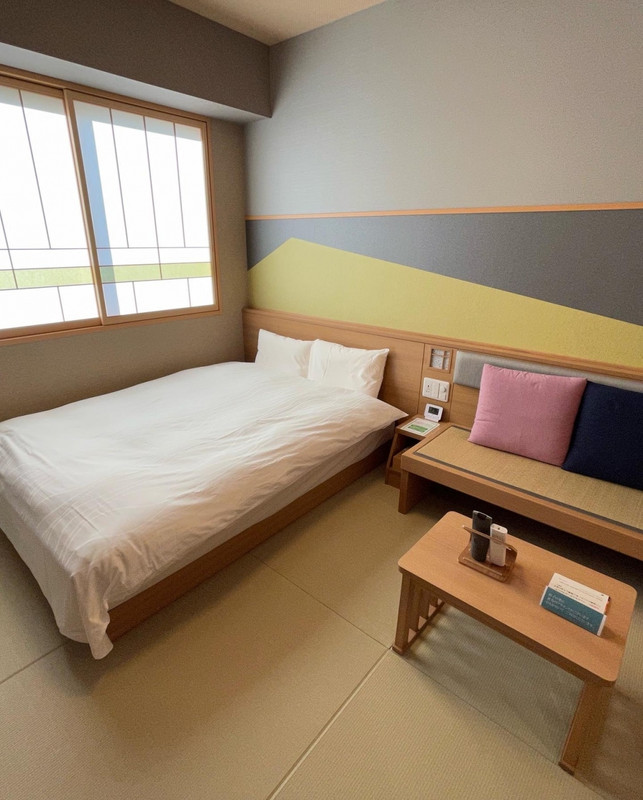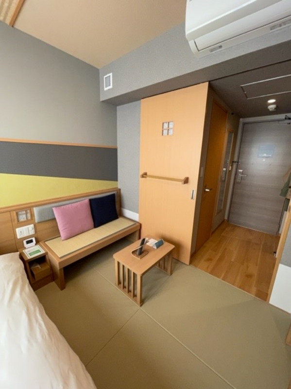 松本の繁華街から少し離れた場所にありますが、新しい宿です。全館畳敷きで素足で歩けます。スリッパや使い捨て靴下もいただけます。最上階には露天風呂もあります。お風呂の後にはアイス、夜は夜鳴きそばも無料です。お部屋もこじんまりとしていましたが、とても居心地が良かったです。コスパ最強だと思います。朝食は地のものを沢山取り入れていてとても美味しいです。