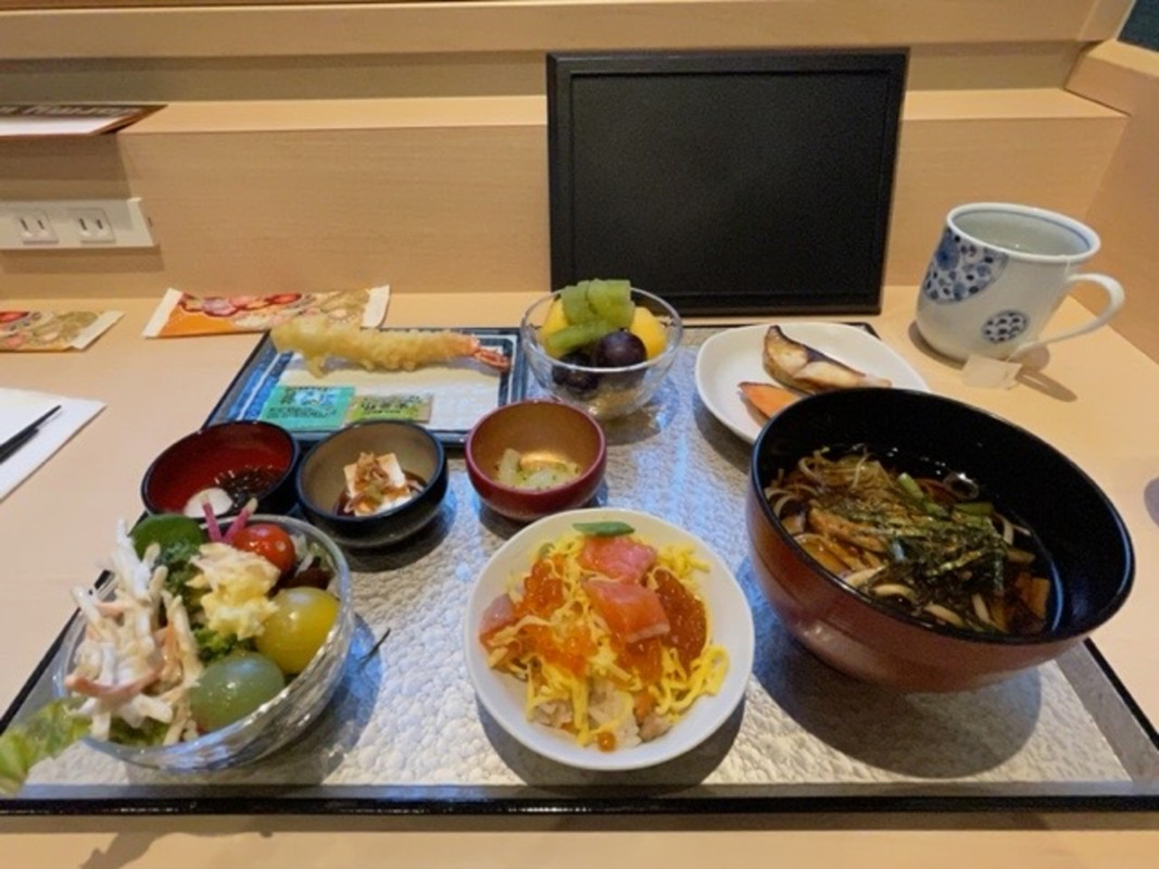 今回はは、県民割を利用してリーズナブルに宿泊できました。ビジネスホテルですが、温泉もあり、朝食も地元食事の利用で、とても美味しく食べられます。おそばもとてもおいしいです。また朝から天ぷら、牛丼も作れます