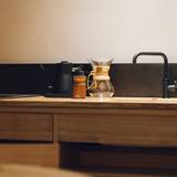 朝食後はお部屋でコーヒーを飲みながらのんびり。藍染のティッシュカバーや一点一点が手作りのランプシェードなど、客室の細かい部分もじっくりと楽しみましょう。また、スイートルームには洗面ボウルが2台あり身支度もスムーズ。