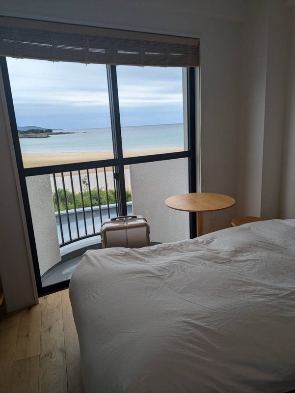 部屋は清潔感があるし、木目調のベッドはシンプルで気持ちがいい。窓の外は、すぐに海が見えるし、五島列島に来たことをそれなりに実感します。合間にちょっと海岸に出たりもできますので。1 / 1