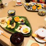 朝食は8時半から。個室レストランまたは部屋食でどうぞ♪炊き立てのごはんに、お味噌汁や焼き魚・煮物・卵焼き…。少しずつたくさんの種類が嬉しい和のおかずたち。滋養たっぷりの朝食で、エネルギーチャージしてくださいね。