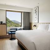 スタイリッシュな客室で目に入るのは、大きな窓。窓に向けて置かれたソファに座って、美しい風景を目の前に心穏やかに過ごせますよ。洗面スペースもおしゃれ♪シャワーブースとトイレがセパレートで、快適です。
