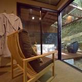 京都市内から最も近い温泉郷、亀岡市・湯の花温泉にある「すみや亀峰菴」。茅葺屋根をくぐった先にはアートに彩られたモダンな空間が広がります。緑に囲まれた静かな客室に、暖炉の燃えるライブラリー、湯上り処のワインバー、”おくどさん”のあるダイニング…。温泉と非日常に癒される特別な一日を。