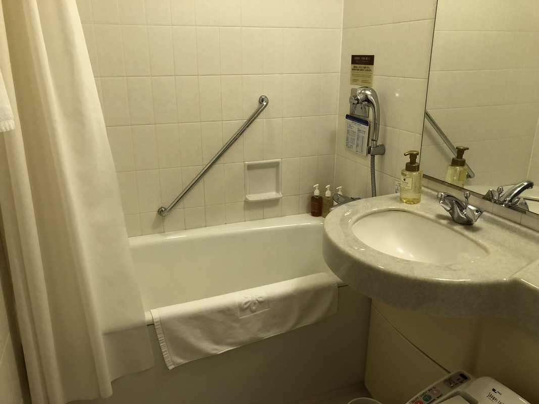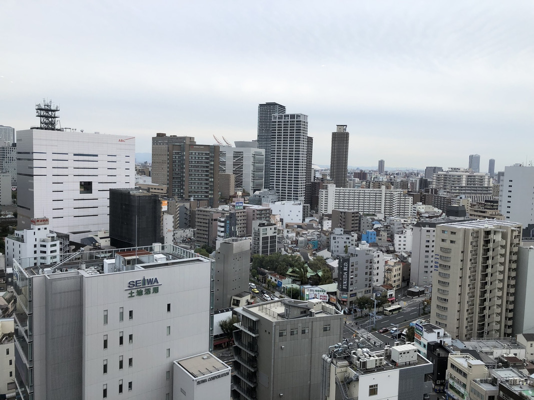 2018年に約2億円を投じて290室の客室を改装、以来、全面禁煙のホテルとなり、客室もリニューアルされています。シングルルームに宿泊しましたが、広さは20㎡もあり、逆に妙に広く感じ、ベッドが小さく見えてしまいました。最大の特徴は全客室で天然温泉が楽しめること。各部屋のバスルームには、他のホテルでは見かけない、温泉給油と上水給油の切替バーがあり、好みの温度で温泉が楽しめます。ただ、バスタブの広さが広いわけでもなく、洗い場もないので、温泉という気分にはあまりなれませんでした。なお、スパも併設されていますが、別料金(優待料金が適用されるので800円)で、15時~23時までなので、少し使いづらいのが難点。周辺に大きな建物が少ないので、眺望は良い。大阪駅周辺とは比べ物にならない庶民的な場所なので、梅田周辺からの徒歩が気にならなければ、使い勝手の良いホテルだと思います。1 / 10