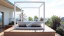 屋外テラス「テラスリビング」は、この客室の大きな魅力のひとつ。ベンチに腰かけて日中は海を、夜は夜景を楽しみながら、思い思いの時間を過ごしてみて。