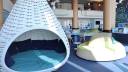 ラウンジの奥にある「キッズルーム」。ボールプールや小さな滑り台、また4歳未満のお子様用に小さなクライミングウォールがありますよ。