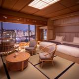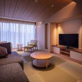 部屋はマッサージチェア付川側上層階12.5畳【禁煙】、プランは部屋食【若水旬会席】。
