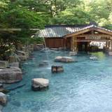 木々に囲まれた川沿いの巨大露天風呂が圧巻