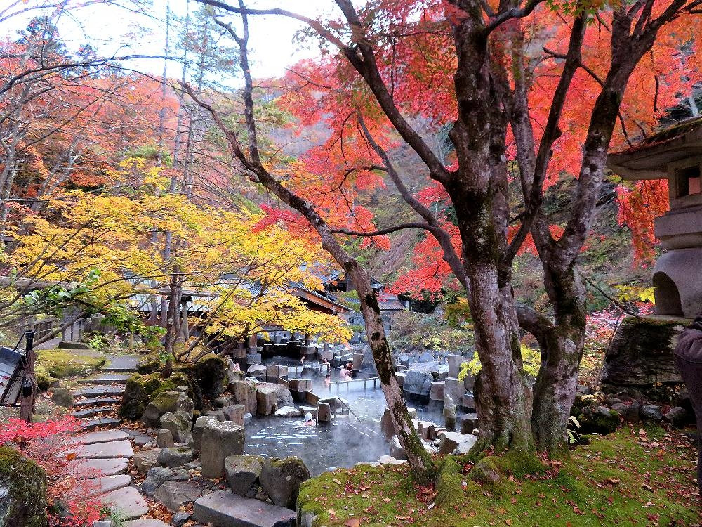 2021年の11月初旬に泊まりました。ちょうど紅葉がみごろで、期待していなかっただけに感激しました。露天風呂も子宝の湯、般若の湯、麻耶の湯、摩詞の湯という4つの露天風呂があり、一つだけある女性専用の露天風呂以外は混浴ですが、男女とも湯あみ着で入ることになっていたので、安心して入ることができ、楽しめました。私達は宿泊客だったので、日帰り客が入らない時間帯にゆっくり入れました。紅葉の時期に宿泊して、のんびり紅葉をながめながら、露天風呂を満喫することをお勧めします。私的にはいままで宿泊した温泉宿の中では、最もロケーションの良い宿でした。
