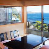 伊豆の高台に佇む大人の隠れ家「吉祥CAREN」。アフタヌーンティやお休み前のスイーツサービスなど女子に嬉しいおもてなしが充実しています。自家源泉から引く豊富な温泉は、絶景露天や貸切風呂など姉妹館とあわせ18種。温泉宿では珍しい‟鉄板焼き”で、金目鯛や伊勢海老など名物を堪能して。