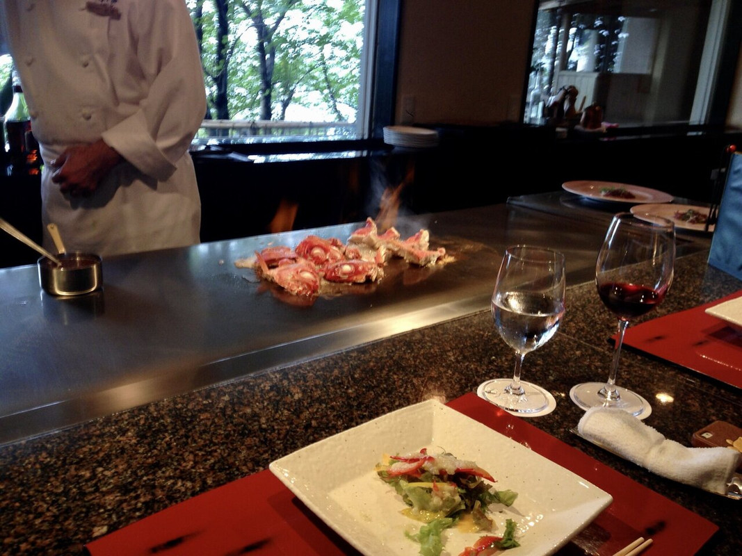 吉祥carenに、ランチ&温泉 日帰りプランで行ってきました。レストランは、鉄板焼青竹です。金目鯛の鉄板焼きをメインにした料理です。目の前の鉄板で調理をし、お決まりのファイヤー!には、孫姫が目を丸くして、火事だ火事だ~と叫んでいました。温泉は階上の眺めの良い露天風呂温泉でした。