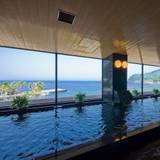 駿河湾を望む絶景温泉も宿の魅力♪海に近い“土肥温泉”はミネラル分たっぷりで美肌効果があるとか。広々とした大浴場に加え、予約制で有料の貸切露天風呂もおすすめです。