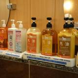 お散歩から戻った後は、宿で〆の温泉タイム。館内には、内湯のほかに陶器風呂と鉄釜風呂の2種類の貸切風呂があります。化粧水にピーリングジェル、かかとつるつるクリームなどアメニティも充実してますよ。