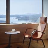「ザ・ベイスイート」ラウンジ、窓の外に屋上庭園が見える