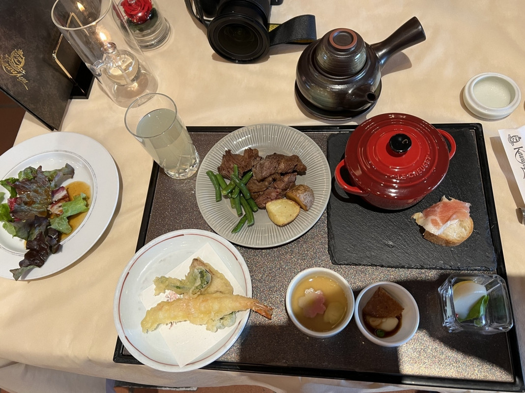 バブルの時に建設されたホテルで、美術品や骨董品、スタインウェイのピアノなどが置かれた天井高のあるエントランスロビーの豪華さに圧倒されました。宿泊した和洋室は二人には十分すぎる広さと豪華な造りでしたが設備には経年劣化がそこそこありました。「王様のビュッフェ」と言われる食事も非常に美味しかったです。