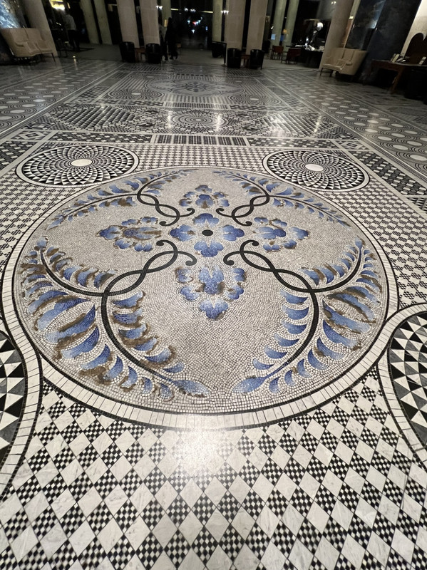スタインウェイの特注のピアノやシャガール、ダリの絵画、そして足元に広がる美しいモザイクの床の模様・・・これでもかこれでもかと贅沢な感動に包まれます。