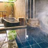 青い温泉に浸かり、和情緒を感じる。全室源泉かけ流しの内湯付きの高級旅館