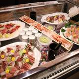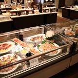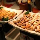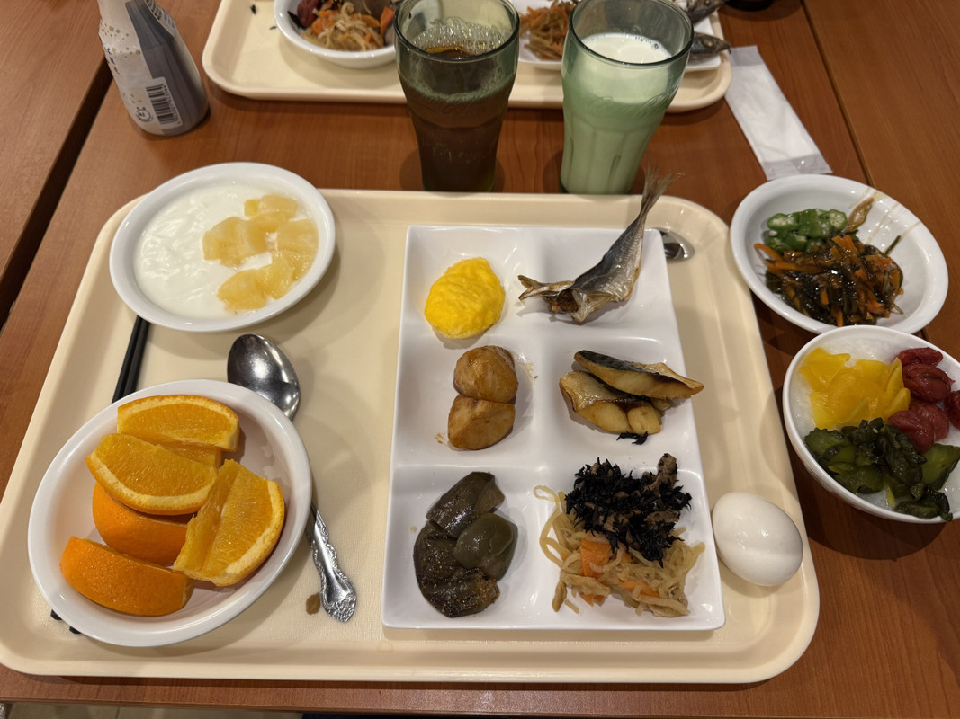 夕食は広いレストランでのバイキング。約70分かけて、刺身や地元の野菜をいただきましょう。日本酒や焼酎などアルコールも飲み放題です。