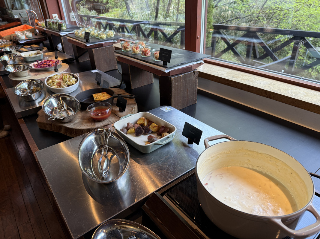 星野リゾートが経営するホテルで、豪華さもあり、平日でしたが結婚式が行われていました。ホテルを入って右側には広々したラウンジがあり軽食やデザートプレートを頂けます。全面ガラス張りで優雅な時間を過ごせました。