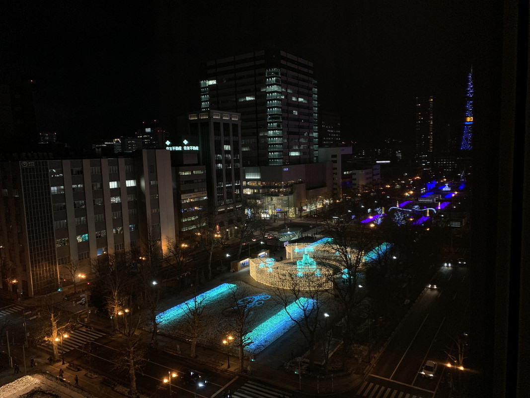 大通り公園がすぐ下に見える部屋だったので、ライトアップされていてきれいでした。部屋はとても新しくてきれいで大浴場もあって寛げました。