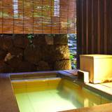 湯畑から引き込んだ源泉を加水せずに冷まし、42度をキープ。小さくて深い湯舟には、血流や代謝を良くしてくれる効果が期待できるそう。貸切風呂で気兼ねなく草津の湯を満喫。※貸切風呂の予約は当日フロントまで。