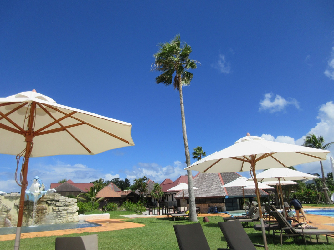 沖縄北部ヤンバルにあるリゾートホテル。コテージ、メゾネット等タイプの異なる部屋があります。目の前がビーチでパラソル、チェアーが無料で利用できます。ヤシの木が何本も生えていて南国感抜群です。ビーチの近くに大浴場もあり、ここは宿泊翌日1日利用できるので助かります。
