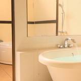 お次は、洗い場付きのバスルームでリラックス。ベビーバスやベビーバスチェアなどの貸出品を利用すれば快適な湯浴みを楽しめます。室内に洗濯機や乾燥機、物干し竿などが用意されているのも家族旅行に嬉しいポイント。