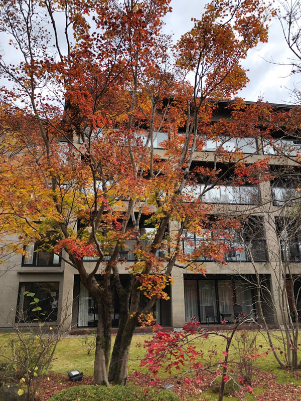 部屋の前からは、中庭の散策の方、リトリート(retreat)からのレストランへの移動の方など、姿を見かけますが、許容範囲で、それ以上に紅葉が素晴らしい。1 / 2