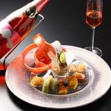 夕食は個室「北乃風茶寮」で。人目を気にせずプライベートな会食が叶います。北海道と箱根の食材を織り交ぜた懐石料理は、ガストロノミーを用いるなど創作性が高く目にも華やか。料理で旬を愉しむ喜びを味わって。