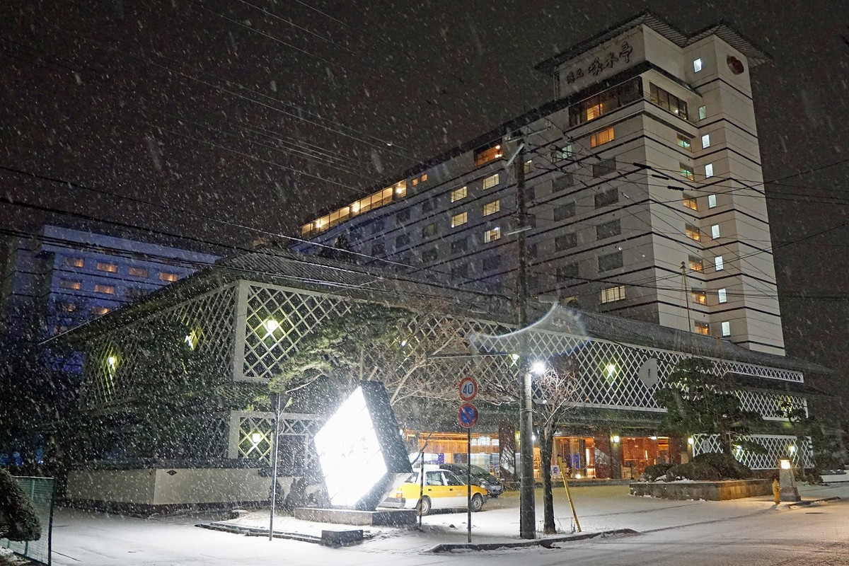「啄木亭」に宿泊するのは2回目で、前回は11年も前のことになります。同じ冬のタイミングで3泊4日のフリーツアーで29,800円という安さでした。さらに4トラベルの口コミでJTBの旅行券10,000円まで当選した覚えがあります。函館空港に着いてからは一番楽なタクシーでホテルまで向かいました。バスだと停留所から雪道を荷物を持って10分ほど歩くことになります。1,400円でした。今回はトラピックスのツアーでの宿泊で、ホテルに着くと専用のカウンターが用意されていて、スムーズに部屋まで行けました。前回は洋間と和室が一緒になった広い部屋でしたが、今回は和室だけの狭い部屋だったのでちょっとがっかりです。夕食は午後5時30分から午後6時と時間指定がありましたが、これではクリスマスシーズンの「クリスマスファンタジー」をベイエリアまで観に行くことが出来ません。前回の旅でも夕食をキャンセルしたことがあったので、町中で食べることにしました。部屋から函館山と五稜郭タワーが競馬場越しに見えたのが唯一の良かったことでしょうか。市電の湯の川温泉停留所までは歩いて5分くらいですが、雪で凍っていると10分くらいはかかると思います。11年の間にホテルの前に大きなドラックストアが出来て、飲み物やお菓子など買えるようになったのは良いことです。市電で十字街まで約40分ほどかかりますが、風情があるのでタクシーよりは良いと思います。(スイカも使えます。乗降時2回タッチ)温泉は最上階でとてもいい湯ですが、露天風呂は雪が降っているととても寒いです。朝食はツアー専用の宴会場でしたが、函館ラーメンやミニ海鮮丼がいただけたのが良かったです。マグロのなめろうなど地元の料理も楽しめました。