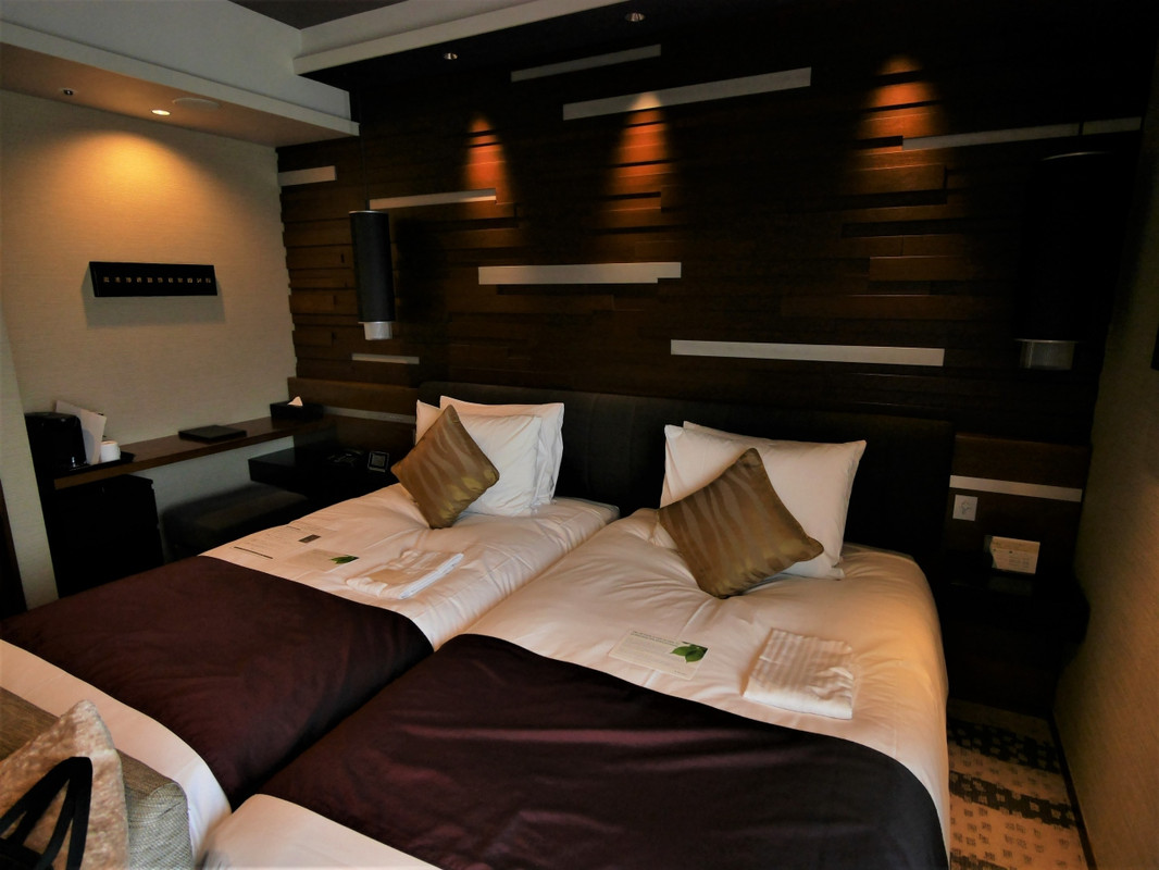 何と言っても駅直結の利便性は絶大で、コンビニだけでなくデパートや飲食店などすべてがホテル内にあるも同然。セレクトした部屋はコンセプトルームとして各部屋ごとに芸大生などが描いた絵画が飾られています。コロナ禍で価格がかなり下がっており、ホテルの苦境がうかがわれます・・・。