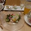 カウンター越しにシェフがオーダー後調理してくれ、観ていても楽しい。地元素材をふんだんに使った本格的なフレンチと和食はお手本のメニューがテーブルにあるので、そのまま順にオーダーしても良いし、アラカルト的に追加できます。小食の方も男性も、お子さんも気兼ねなく楽しくお食事ができそうです。広いダイニングの端の方にはお子さん用のエリアもあり、安心です。