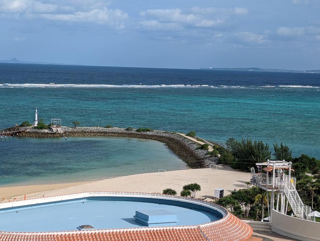 ホテル内から海辺の橋を歩いたり、10月でもプールで泳げたりと楽しい滞在でした。