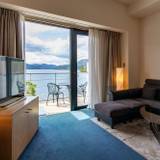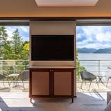 芦ノ湖に面した中庭でのんびり。全室レイクビューの上品な温泉リゾート