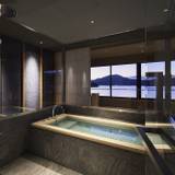 和×北欧家具が素敵。大浴場から大鳥居を望む、宮島のモダンな高級宿