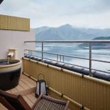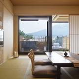 河口湖の南岸に佇む、和モダンな旅館「湖南荘」。湖または富士山ビューの露天風呂付客室でゆっくりと温泉に浸かり、お部屋食で会席料理を味わう、プライベートな旅が叶います。サウナ付大浴場や貸切風呂、屋上の足湯テラスも眺望◎。赤ちゃん向けのサービスも豊富で、どの年代も旅を満喫できますよ。