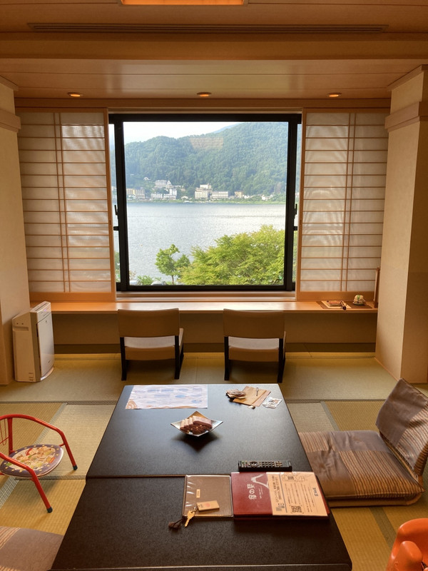 今回は河口湖側の部屋でしたが景色はすばらしかったです。富士山が見える部屋もありますが、大浴場や展望足湯からも眺めることができます。部屋食や貸切風呂があったりと子供連れでも利用しやすい旅館だと思います。館内はとてもきれいでスタッフも皆親切でした。