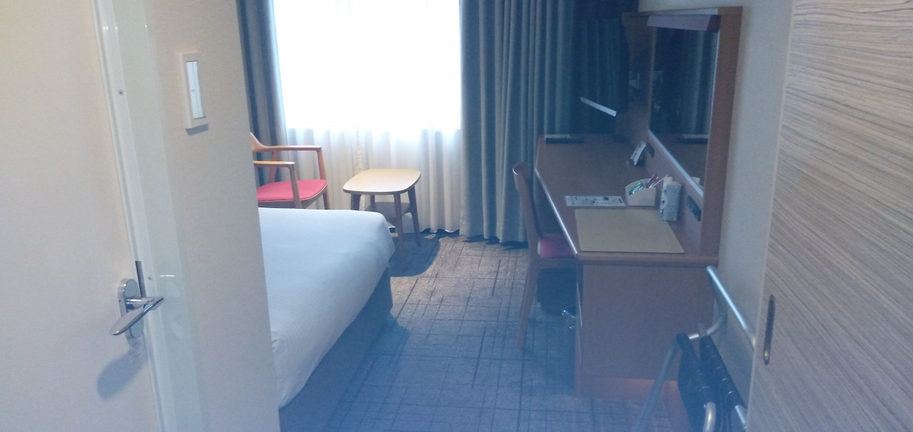 ANA往復航空券とクラブラウンジアクセス付きの部屋がセットになったプランを利用しました。最上階のラウンジで駅側の席が空いていれば、広島駅に出入りする新幹線や在来線を眺めながら朝食を楽しめます。バータイムにはセルフサービスでアルコールを楽しめますが、ラウンジの駅側半分は有料のバーエリアとして営業しているので朝食時の半分のスペースとなります。