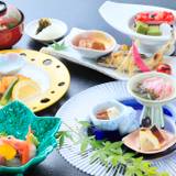 夕食は18:00または18:30から個室風の食事処「今宵ダイニング」で。海鮮の会席料理で、西伊豆戸田ならではの深海グルメを味わって。別注で駿河湾の名物食材・高足蟹や金目鯛のオーダーも可能。事前に宿に確認してくださいね。